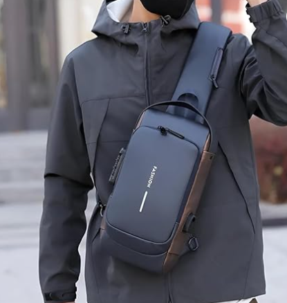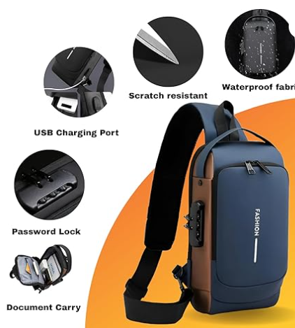 Blue -Gold usb Sling Bag for Men & Women